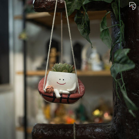 Hanging Smiley Face Planter with Basketball for Gift Balcony decor Home Decor