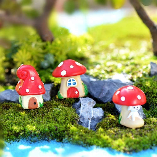 Miniature Mushroom House for Tray Decor(Set of 3)