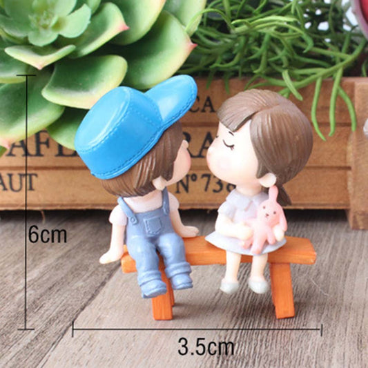 Miniature Sitting Couple Figurine for Bonsai Tray Decor