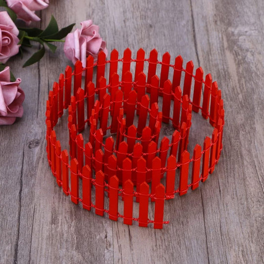 Miniature Fence for Fairy Garden Decor (Red)Tray Garden Bonsai Tray(Set of 2)