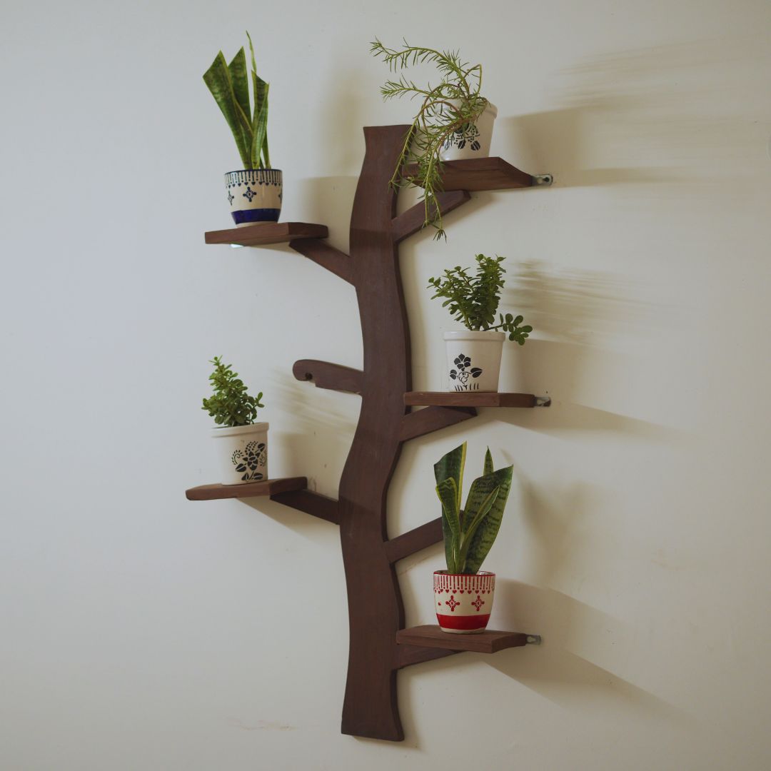 Its rich brown finish and textured wood grain offer an earthy aesthetic perfect for modern, bohemian, or farmhouse-style homes. Designed for versatility, this shelf holds small indoor planters, candles, or decorative collectables with ease, making it ideal for living rooms, bedrooms, entryways, or meditation corners.